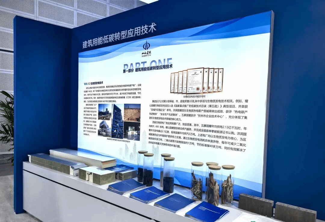 建筑用能低碳轉(zhuǎn)型應(yīng)用技術(shù)展區(qū),呈現(xiàn)了太陽(yáng)能光伏、地?zé)崮?、生物質(zhì)發(fā)電、生活垃圾焚燒發(fā)電等技術(shù)。