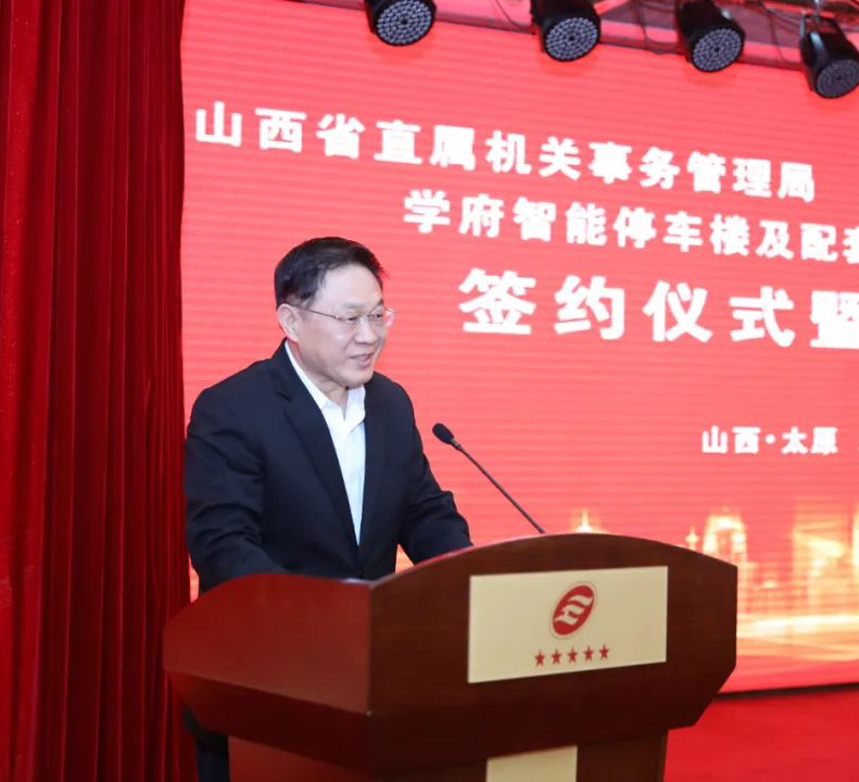 4月9日,太原學府智能停車樓及配套建筑特許經(jīng)營項目舉行簽約儀式暨動員大會。省直屬機關事務管理局局長毛益民、山西建投黨委書記、董事長孫波出席并講話。