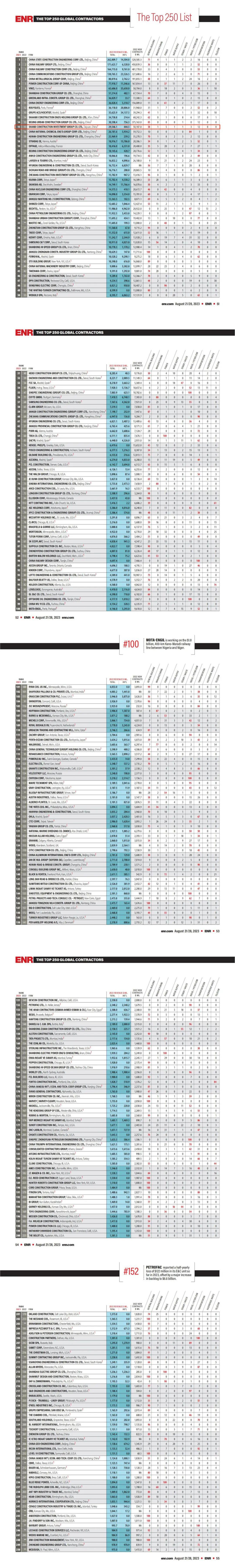 2023年度《美國工程新聞紀錄(ENR)》全球最大250家國際承包商完整榜單