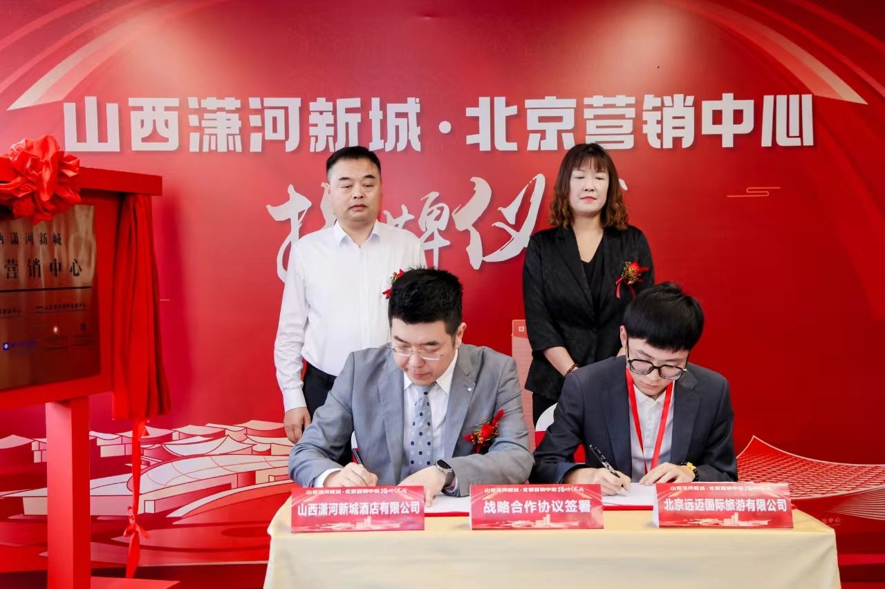 儀式上,與會(huì)嘉賓共同為山西·瀟河新城北京營(yíng)銷中心揭牌,并見證山西瀟河新城酒店有限公司與北京遠(yuǎn)邁國(guó)際旅游有限公司、中世運(yùn)通(北京)國(guó)際會(huì)議展覽有限公司簽署戰(zhàn)略合作協(xié)議。