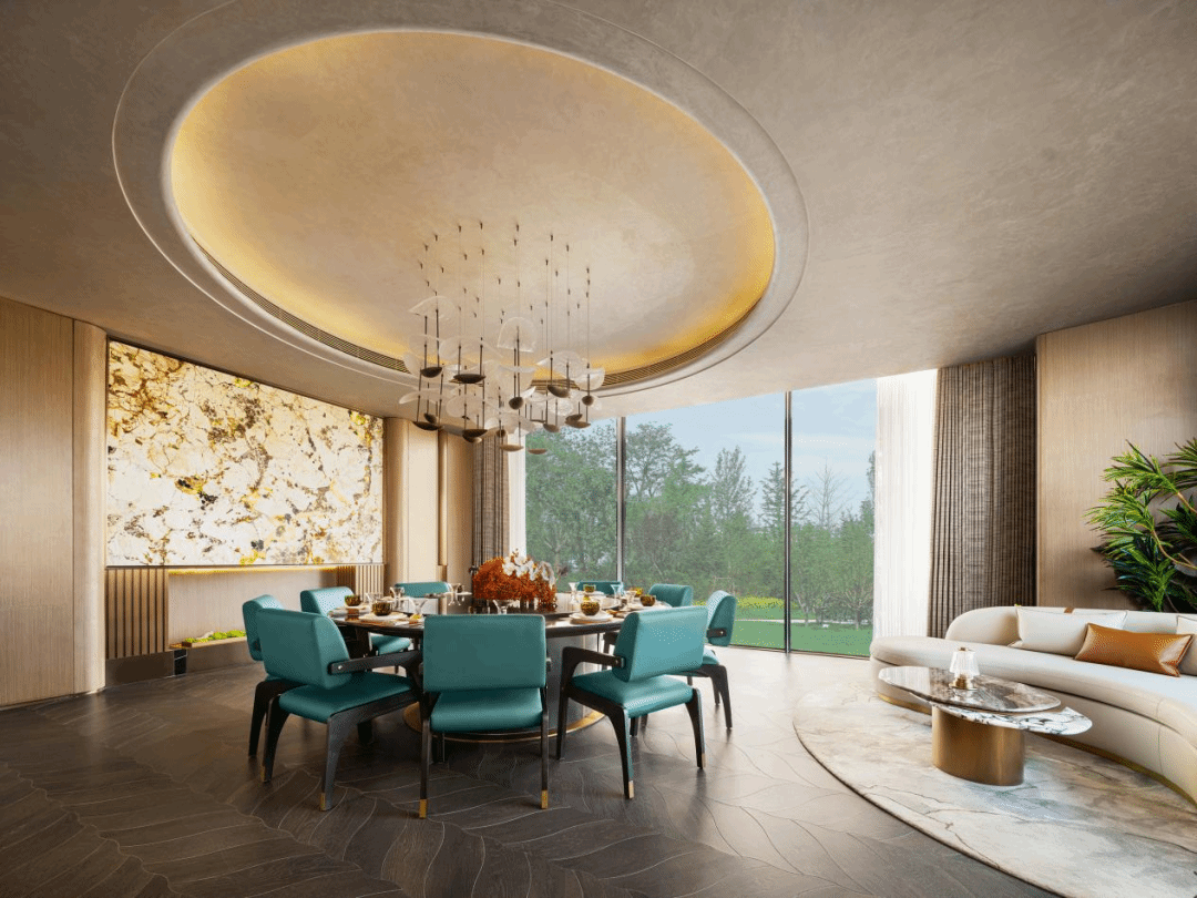 建投·濱河首府營銷中心硬裝設計在追求美學價值的同時,融入人與自然和諧共生的理念,兼顧環(huán)保與可持續(xù)性,以觀瀑、抱水、行舟、歸宇“四境”的空間哲學,成為近年來太原市濱水住宅領(lǐng)域的代表項目。