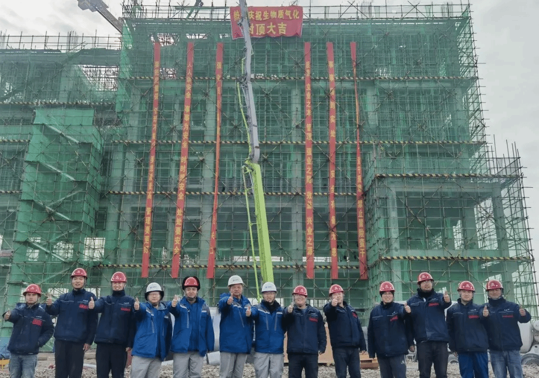 自開工以來,項目團(tuán)隊以高標(biāo)準(zhǔn)、嚴(yán)要求的工作態(tài)度和擔(dān)當(dāng)精神優(yōu)化統(tǒng)籌調(diào)度、抓好質(zhì)量管理。2024年11月,項目生物質(zhì)氣化裝置完成封頂。該工程結(jié)構(gòu)復(fù)雜,每層預(yù)埋件多達(dá)400多個,預(yù)留空洞、預(yù)埋件多,施工難度較大,為保障項目順利推進(jìn),項目團(tuán)隊成立攻堅小組,通過BIM技術(shù)模擬施工、定制模塊化安裝工藝,并進(jìn)行嚴(yán)格的質(zhì)量控制措施,在項目團(tuán)隊的通力協(xié)作下,攻克技術(shù)難關(guān),成功實現(xiàn)施工目標(biāo),為項目的后續(xù)推進(jìn)奠定了堅實基礎(chǔ)。