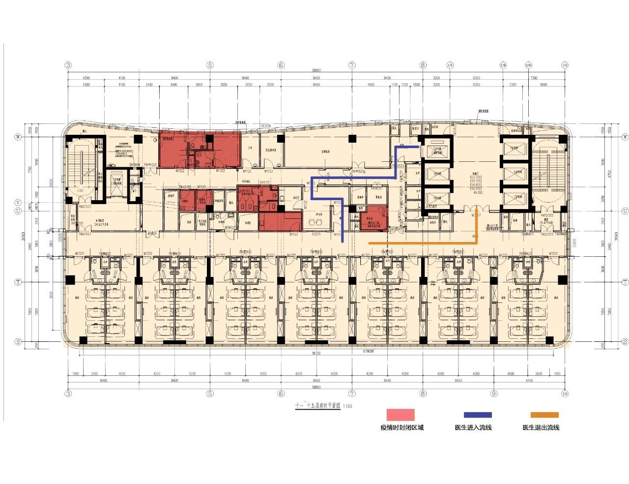 此外,病房層采用“平時(shí)即備戰(zhàn)”的設(shè)計(jì)理念,在建造階段即通過可拆卸輕質(zhì)隔墻系統(tǒng)和預(yù)埋標(biāo)準(zhǔn)化機(jī)電接口為疫情發(fā)生時(shí)能夠快速轉(zhuǎn)換做好準(zhǔn)備,并運(yùn)用BIM技術(shù)進(jìn)行全流程模擬優(yōu)化。當(dāng)需要切換至傳染病收治模式時(shí),僅需封堵關(guān)鍵門洞、連通陽臺(tái)形成獨(dú)立患者(污染區(qū))通道,同時(shí)利用現(xiàn)有內(nèi)部走道劃分醫(yī)護(hù)(半污染區(qū))區(qū)域,即可在48小時(shí)內(nèi)安全、高效地完成從日常診療到傳染病收治的靜默轉(zhuǎn)換,極大提升了應(yīng)急響應(yīng)能力。