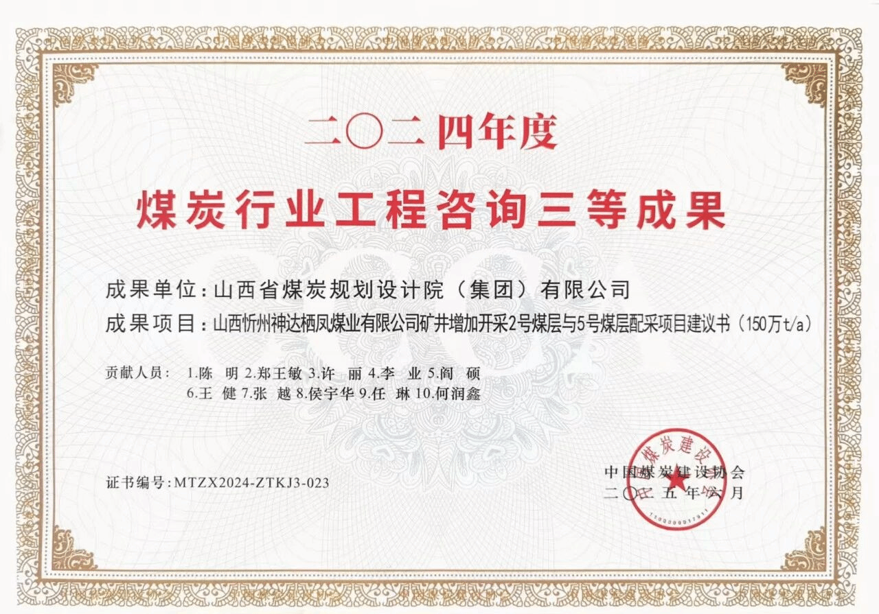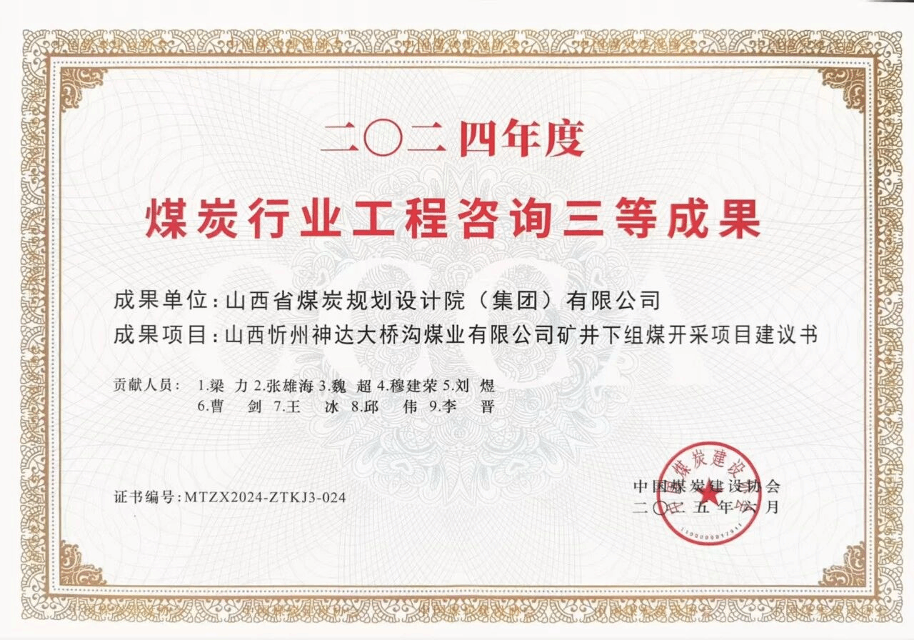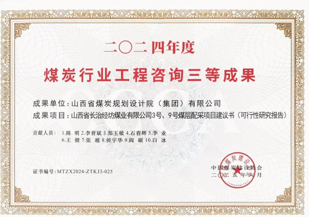近日,中國(guó)煤炭建設(shè)協(xié)會(huì)公布2024年度煤炭行業(yè)優(yōu)秀工程咨詢成果獲獎(jiǎng)名單,山西建投煤規(guī)院集團(tuán)斬獲四項(xiàng)煤炭行業(yè)(部級(jí))工程咨詢?nèi)瘸晒?jiǎng)。