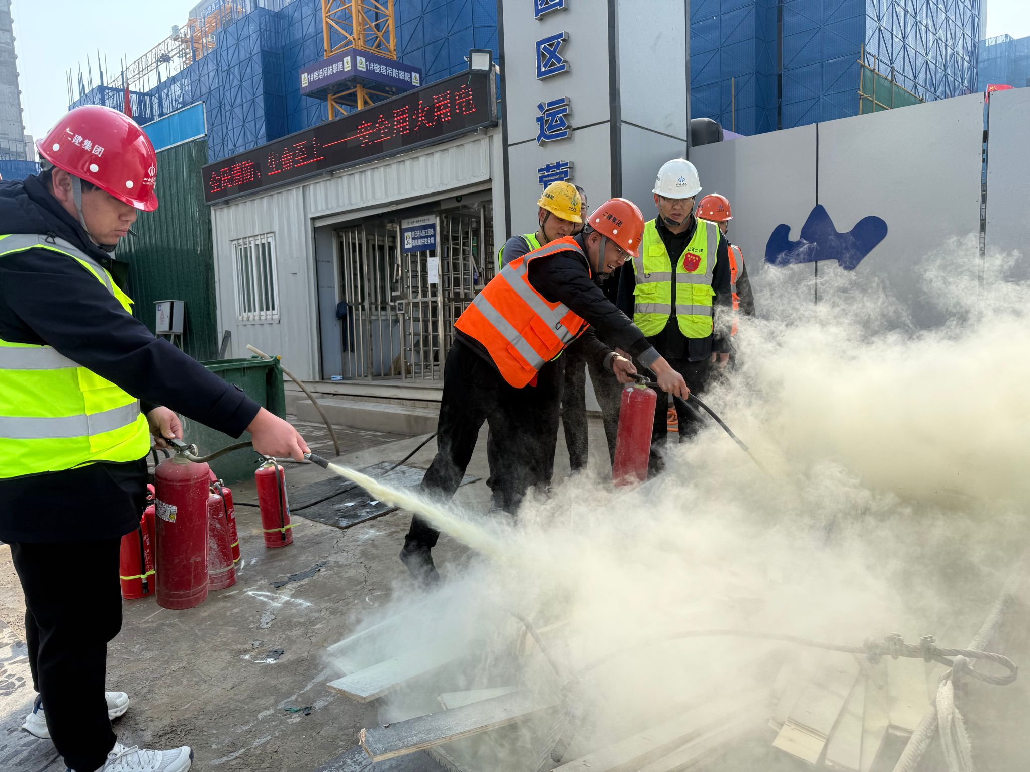 安全不僅重防控,更重應(yīng)急響應(yīng)。為應(yīng)對(duì)冬季極端天氣,項(xiàng)目部構(gòu)建“全周期”應(yīng)急保障體系。施工前,制定極寒停工、火災(zāi)疏散、高處墜落救援等12項(xiàng)專(zhuān)項(xiàng)預(yù)案,明確崗位職責(zé)與處置流程,并開(kāi)展消防演練和安全培訓(xùn),確保全員知責(zé)明法。施工中,實(shí)行安全員與技術(shù)員“雙崗聯(lián)動(dòng)”,每日對(duì)腳手架、臨時(shí)用電、高空作業(yè)等關(guān)鍵環(huán)節(jié)進(jìn)行“地毯式”排查,發(fā)現(xiàn)問(wèn)題立即整改,做到“問(wèn)題不過(guò)夜”,建立應(yīng)急復(fù)盤(pán)機(jī)制。施工后,總結(jié)演練與實(shí)際處置經(jīng)驗(yàn),持續(xù)優(yōu)化預(yù)案、堵塞漏洞。依托“事前有預(yù)案、事中有響應(yīng)、事后有復(fù)盤(pán)”的閉環(huán)管理,項(xiàng)目有效提升應(yīng)急處置能力,從容應(yīng)對(duì)寒潮、大風(fēng)等突發(fā)險(xiǎn)情,為冬季施工織密安全防線(xiàn),筑牢“最后一道保險(xiǎn)”。