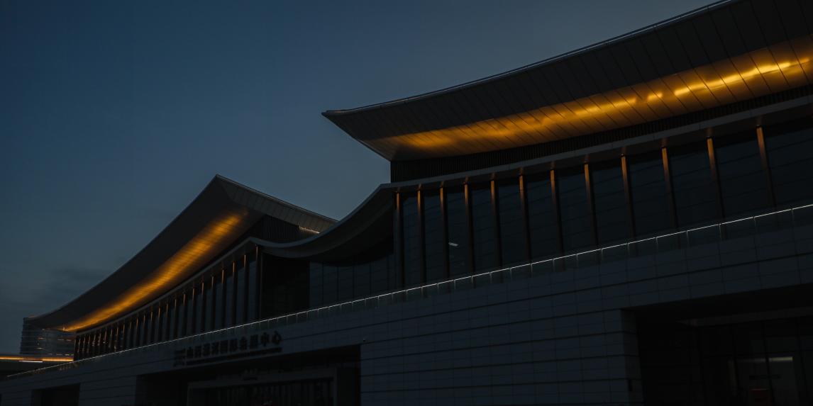 傍晚的瀟河國(guó)際會(huì)展中心中間組團(tuán)項(xiàng)目,靜待揭曉
