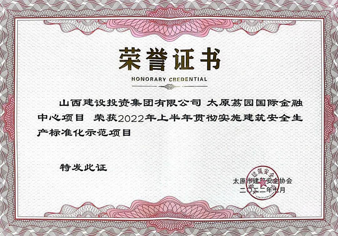 近年來,總承包公司深入開展建筑安全生產(chǎn)標(biāo)準(zhǔn)化工作,狠抓安全基礎(chǔ)管理和安全生產(chǎn)標(biāo)準(zhǔn)化建設(shè),積極探索安全管理新途徑新方法,注重從業(yè)人員素質(zhì)提升,努力構(gòu)建安全生產(chǎn)長效機(jī)制。通過持續(xù)改進(jìn),公司安全生產(chǎn)保障體系日漸完善,安全生產(chǎn)水平日益提升,安全生產(chǎn)形勢持續(xù)穩(wěn)定,安全生產(chǎn)工作邁上了新臺階。在獲得國獎的同時(shí),太原荔園國際金融中心項(xiàng)目,也榮獲了太原市建筑安全協(xié)會2022年上半年貫徹實(shí)施建筑安全生產(chǎn)標(biāo)準(zhǔn)化示范項(xiàng)目。