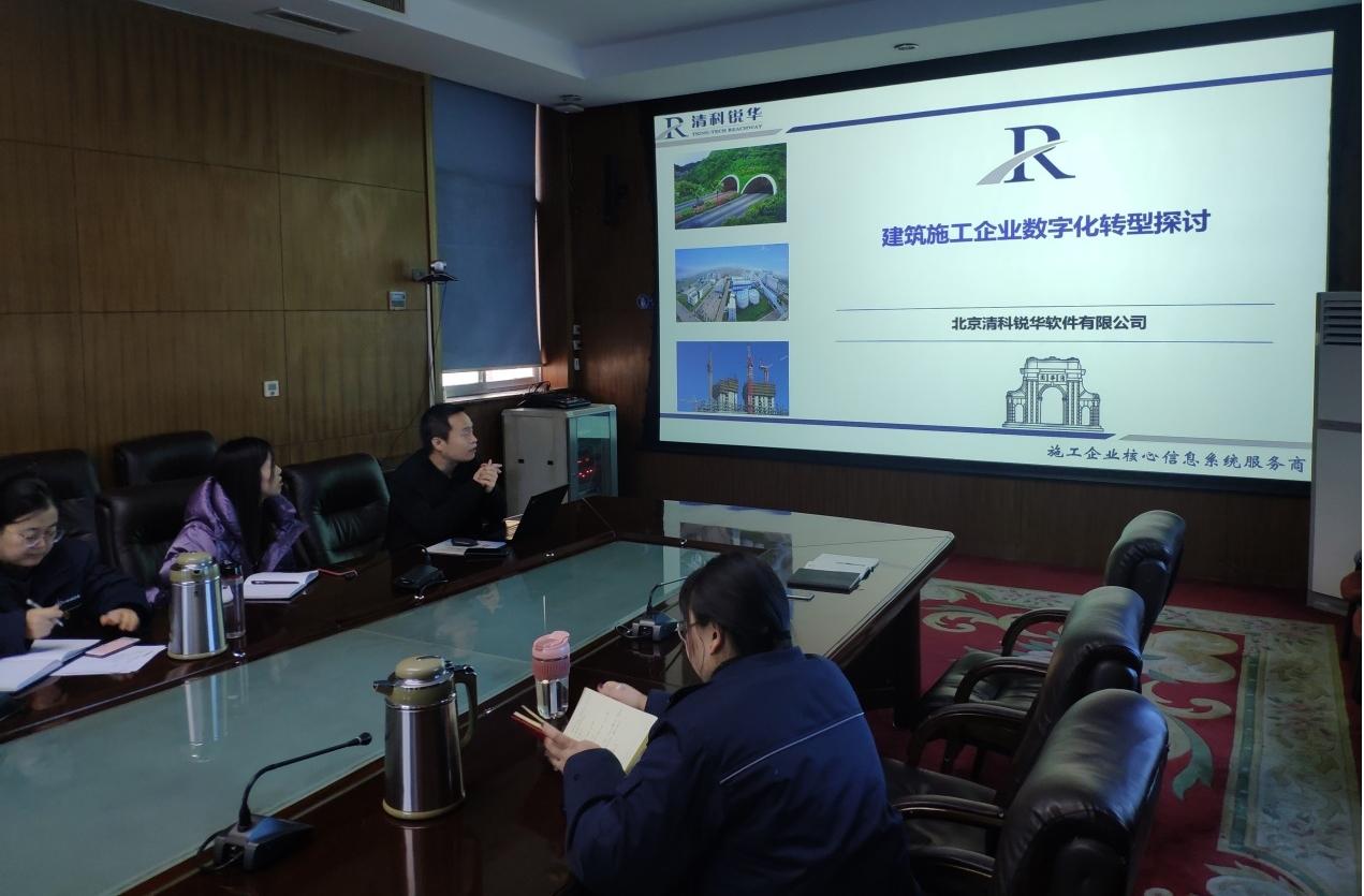 12月17日,公司邀請(qǐng)清科銳華技術(shù)專家對(duì)建筑施工企業(yè)數(shù)字化轉(zhuǎn)型基本概念、建筑施工企業(yè)數(shù)字化轉(zhuǎn)型案例、智慧工地解決方案進(jìn)行了講解,重點(diǎn)對(duì)智慧工地、智慧數(shù)據(jù)中心、調(diào)度指揮中心、管理駕駛艙進(jìn)行了演示。
