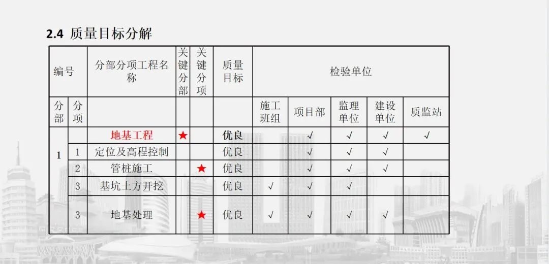 質(zhì)量是工程建設的生命線,是施工過程中的重中之重。項目在前期進行了創(chuàng)優(yōu)策劃,根據(jù)企業(yè)質(zhì)量方針和項目目標,從“人”“機”“料”“法”“環(huán)”等各方面進行深層次剖析,對質(zhì)量目標進行詳細分解,建立了完整的質(zhì)量管理體系和質(zhì)量管理制度。針對現(xiàn)場EPC管理模式下施工圖紙滯后的問題,項目部成立創(chuàng)優(yōu)小組,實行分階段創(chuàng)優(yōu)策劃,同時總結(jié)工程質(zhì)量通病及防治措施,并適時評審、補充和完善;對施工過程中的重難點工程,各個擊破,實現(xiàn)工程質(zhì)量的穩(wěn)步提升。