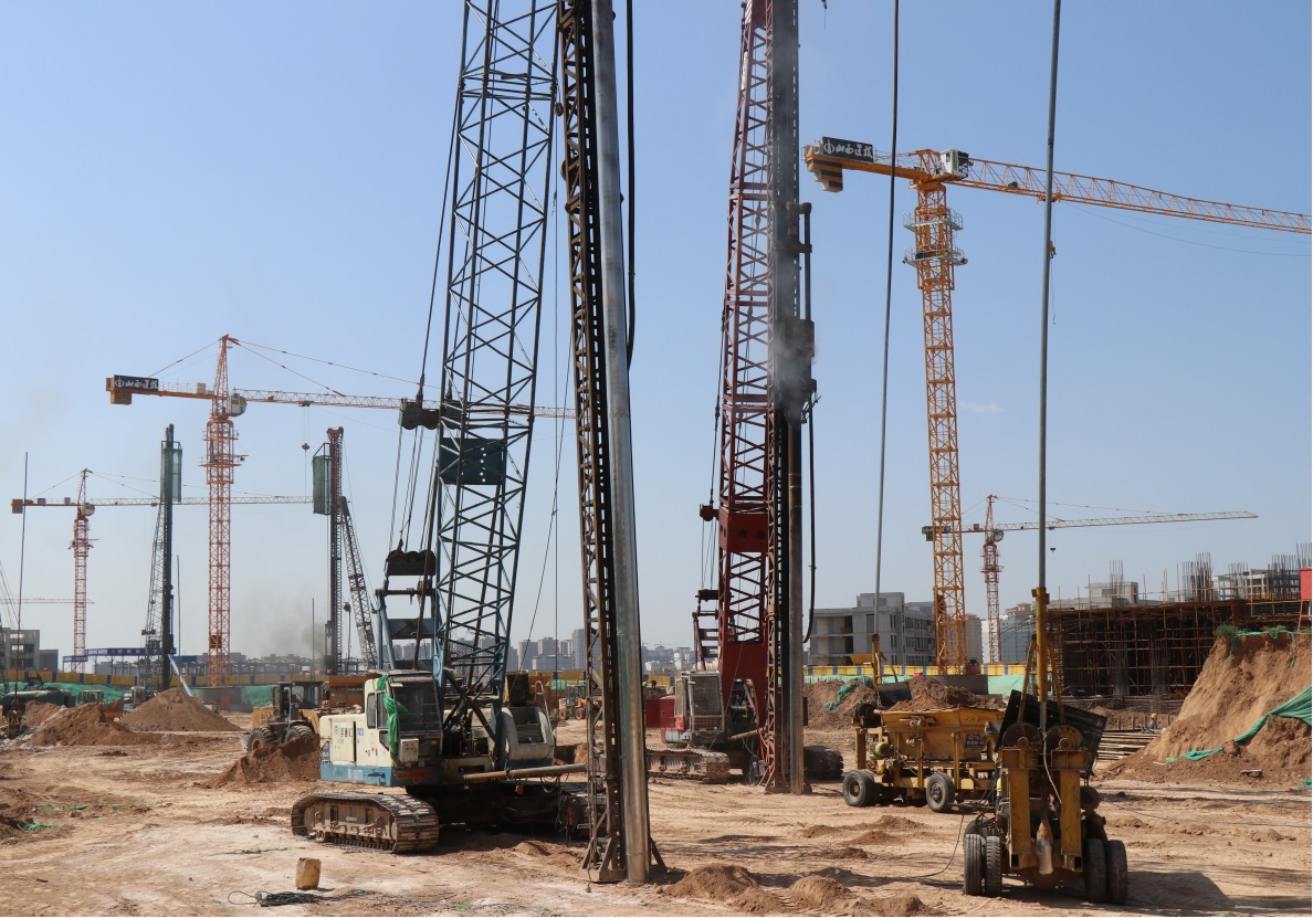 在建工程職教港項(xiàng)目正在進(jìn)行高壓拆除后的地基處理