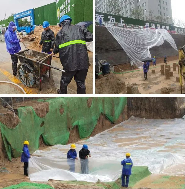 面對(duì)暴雨,項(xiàng)目部迅速啟動(dòng)防汛應(yīng)急預(yù)案,作為共產(chǎn)黨員的經(jīng)理邢慶豐第一時(shí)間奔赴現(xiàn)場(chǎng)指揮工作,帶領(lǐng)項(xiàng)目部青年突擊隊(duì)和全體管理人員,頂風(fēng)冒雨在基坑內(nèi)開展排水搶險(xiǎn)。生動(dòng)詮釋出黨支部“三面紅旗高高飄揚(yáng)”的支部特色,是公司黨員聯(lián)系點(diǎn)“1+N”活動(dòng)的又一具體實(shí)踐。