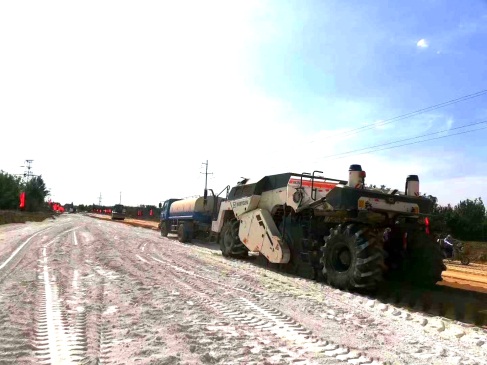東長壽街路基石灰穩(wěn)定土的施工,采用的是冷再生拌合工藝,從土方的攤鋪整平、石灰的撒布到穩(wěn)定土的拌合、整形到碾壓過程,各項(xiàng)工藝作業(yè)流程一氣呵成。驗(yàn)收組對(duì)路基壓實(shí)度、彎沉、高程、平整度等指標(biāo)進(jìn)行了專項(xiàng)檢測(cè),檢測(cè)結(jié)果均能滿足設(shè)計(jì)及規(guī)范要求,并允許進(jìn)入下一階段施工工序。