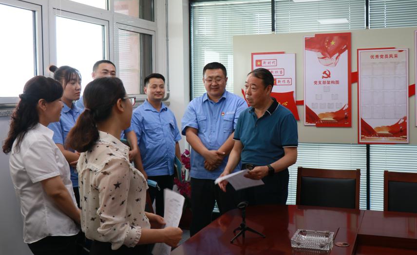 會后,魚洪波一行在項目黨建活動室現(xiàn)場辦公,對黨支部規(guī)范化建設(shè)進行具體指導(dǎo),對打造項目黨建示范點提出了寶貴的意見和建議。