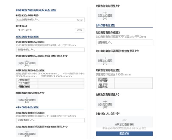 其中嵌入防作假影像記錄系統(tǒng),使每根樁都有完善的資料,使隱蔽工程的管理可以更直觀地看到每一個施工節(jié)點(diǎn)的情況,為資料歸集節(jié)約了時間。同時采用簽名系統(tǒng)使每一步檢查項(xiàng)責(zé)任到人,本著誰簽字誰負(fù)責(zé)的要求,防止出現(xiàn)問題后的推責(zé)情況,減少了管理人員的管理壓力。
