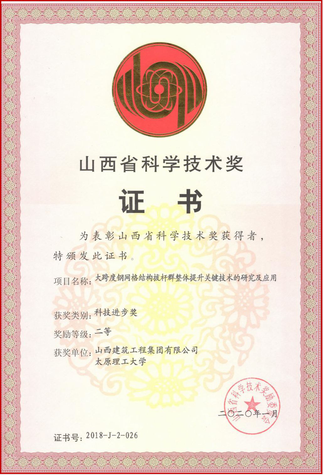 日前,山西省政府公布了《關(guān)于2018年度山西省科學(xué)技術(shù)獎勵的決定》,其中由公司主持完成的“大跨度鋼網(wǎng)格結(jié)構(gòu)拔桿群整體提升技術(shù)的研究與應(yīng)用”榮獲山西省科學(xué)技術(shù)獎二等獎。