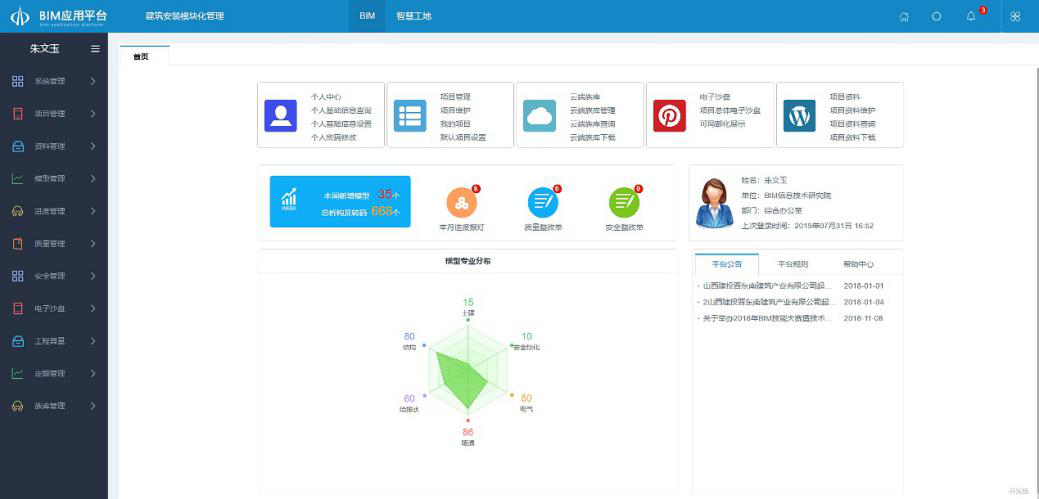 項目負(fù)責(zé)人劉劍峰介紹:“建筑安裝BIM+企業(yè)級信息化管理平臺研究與應(yīng)用”利用模型輕量化技術(shù)手段,將模型文件進(jìn)行輕量化轉(zhuǎn)碼處理,解決了大模型在線可視化困難等問題,實現(xiàn)了資金使用有序化管理、采購預(yù)警與限額領(lǐng)料等監(jiān)控功能。利用虛擬現(xiàn)實技術(shù)建立建筑物的幾何模型和施工過程模型,對施工方案、進(jìn)度、成本進(jìn)行實時、交互、逼真的模擬,驗證對比和優(yōu)化,進(jìn)而采用數(shù)字化手段制定和修改施工方案,并逐步代替?zhèn)鹘y(tǒng)的施工方法。平臺使設(shè)計、施工、運(yùn)營人員搭建了協(xié)同管理平臺,低成本地共享施工新工藝和革新思路,真切展示新技術(shù)的成效,縮短建筑業(yè)新技術(shù)的引入期和推廣期,降低新技術(shù)、新工藝的實驗風(fēng)險。同時,該成果拓展了BIM技術(shù)應(yīng)用的深度和廣度,實現(xiàn)了集團(tuán)BIM技術(shù)應(yīng)用由“點(diǎn)”到“線”再到“面”的創(chuàng)新突破。在實施過程中,該成果獲得計算機(jī)軟件著作權(quán)3項、申報發(fā)明專利1項,并于2019年1月5日順利通過住建部科技計劃項目驗收,達(dá)到國內(nèi)領(lǐng)先水平。