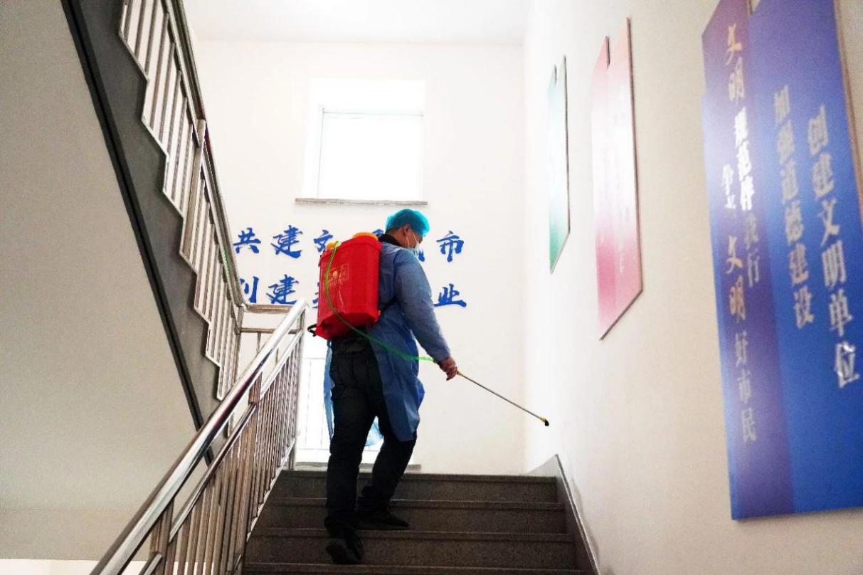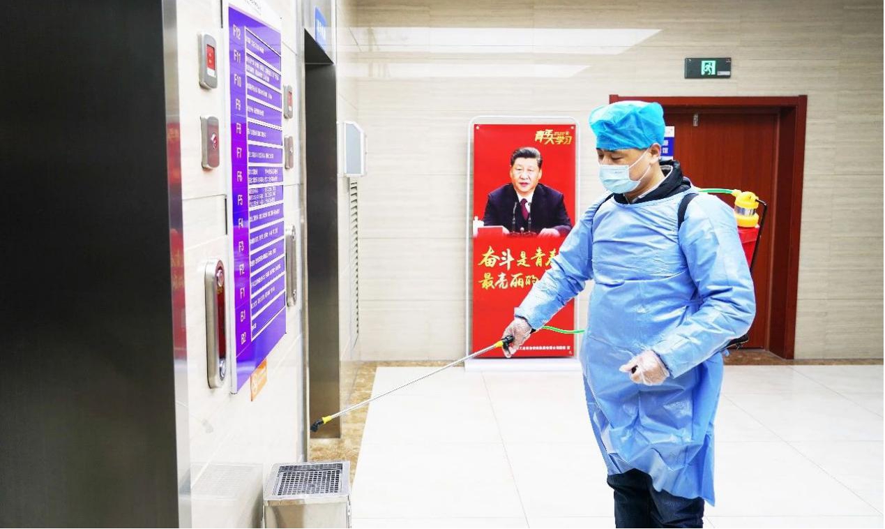 每4小時(shí),對(duì)門廳、樓道、電梯、衛(wèi)生間等公共區(qū)域,通過(guò)噴灑84消毒液等方式進(jìn)行消毒。每日下班后,對(duì)辦公區(qū)域進(jìn)行全覆蓋、無(wú)死角的清理消毒。