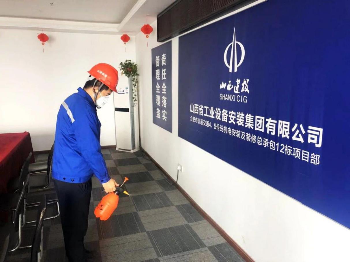 ▲上海山安(華東分部)合肥地鐵項(xiàng)目對(duì)辦公區(qū)進(jìn)行消毒