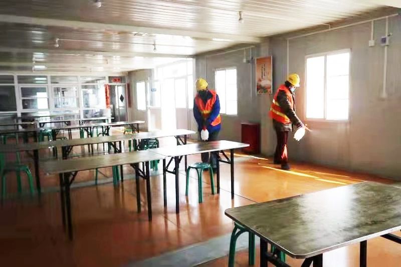 要求各項(xiàng)目部根據(jù)相關(guān)當(dāng)?shù)卣咭蠛晚?xiàng)目屬地疫情防控要求,實(shí)行差別化復(fù)工和管理。每個(gè)項(xiàng)目須配備兩臺(tái)以上的紅外測(cè)溫儀,對(duì)仍在項(xiàng)目現(xiàn)場(chǎng)施工和值守的職工、勞務(wù)人員進(jìn)行日常體溫測(cè)量,并發(fā)放口罩等必要的防護(hù)用品。對(duì)項(xiàng)目返崗人員和復(fù)工人員要逐人排查,詳細(xì)登記假期活動(dòng)路線、接觸人員及本人健康情況。項(xiàng)目部對(duì)宿舍、食堂等公共場(chǎng)所每日進(jìn)行徹底消毒,通過(guò)專業(yè)措施徹底防控疫情。施工現(xiàn)場(chǎng)確保相對(duì)封閉,上班人員一般不得外出;外來(lái)人員佩戴口罩,體溫檢測(cè)正常并備案后,方可進(jìn)入。