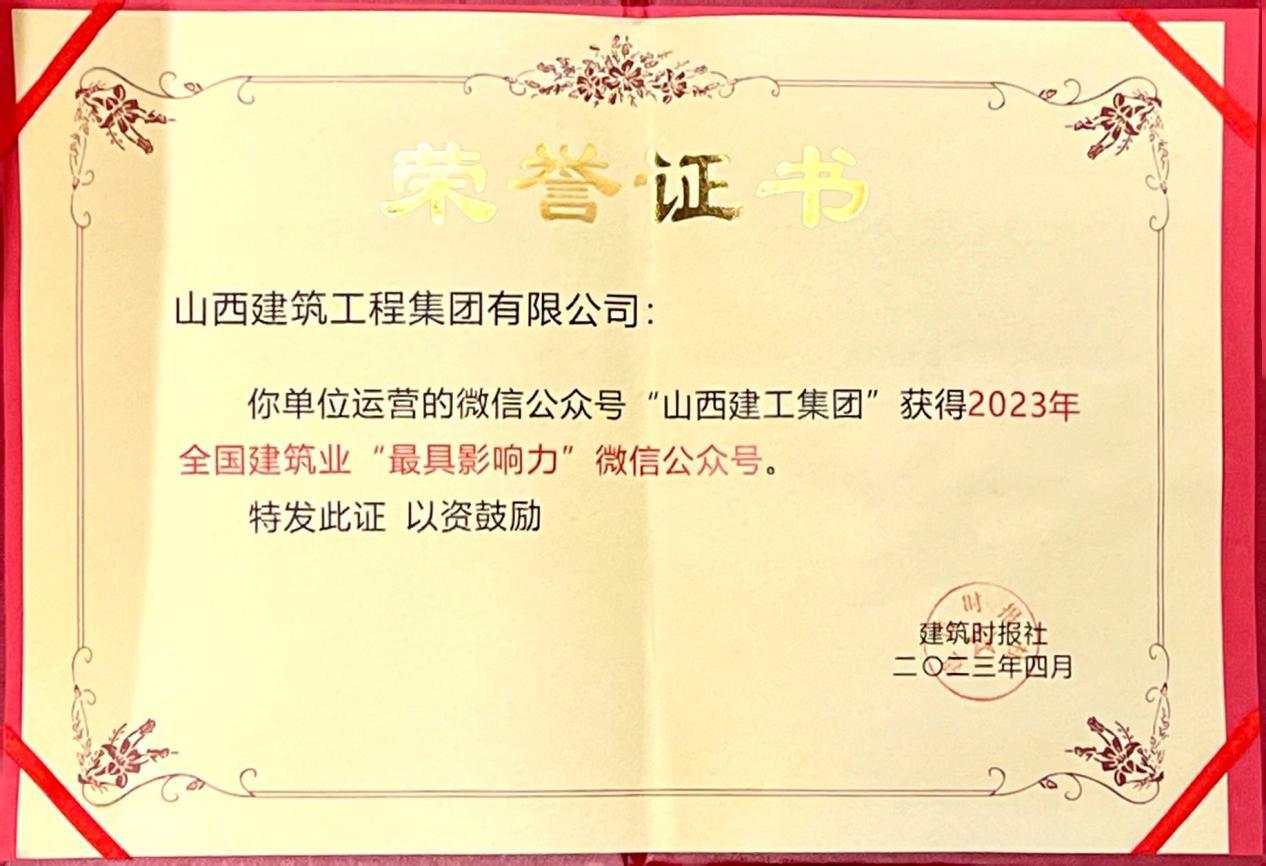 由建筑時報社主辦的2023年建筑業(yè)微信公眾號運維經(jīng)驗交流研討會暨全國建筑業(yè)優(yōu)秀公眾號頒獎典禮在廣西壯族自治區(qū)南寧市舉辦,“山西建工集團”微信公眾號從全國參評的800余家建筑企業(yè)優(yōu)秀微信公眾號中脫穎而出,躋身100強,獲評2023年全國建筑業(yè)“最具影響力”微信公眾號。這是自建筑時報社2020年設(shè)立全國建筑業(yè)“最具影響力”微信公眾號獎項以來,建工集團連續(xù)第四年獲得該榮譽。建工集團將繼續(xù)堅持正確輿論導(dǎo)向,規(guī)范運營管理,注重原創(chuàng)精品,構(gòu)建有責(zé)任、有擔(dān)當(dāng)、有品質(zhì)的內(nèi)容生態(tài),激勵全員以高度的文化自覺和文化擔(dān)當(dāng),推進“和·合”文化持久深入、落地生根。