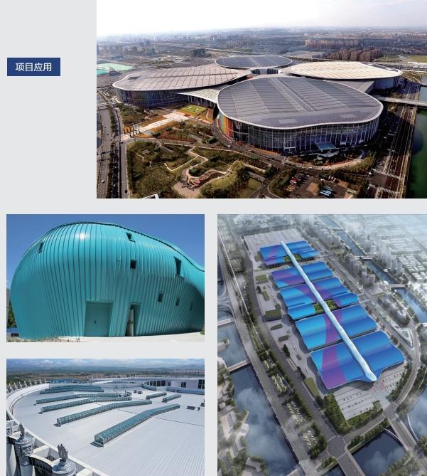 鋁鎂錳屋面是以鋁鎂錳合金為原材壓制的特殊屋面系統(tǒng),具有使用壽命長(zhǎng)、環(huán)保美觀、安裝方便快捷、耐腐蝕、重量輕、強(qiáng)度大、容易加工成型等優(yōu)點(diǎn),同時(shí)可結(jié)合沖孔吸音構(gòu)造實(shí)現(xiàn)較高要求的建筑功能,且可通過(guò)正反彎弧、扇形板等特殊加工方式實(shí)現(xiàn)復(fù)雜曲面效果,廣泛應(yīng)用于機(jī)場(chǎng)航站樓、飛機(jī)維修庫(kù)、車站及大型交通樞紐、會(huì)議及展覽中心、體育場(chǎng)館、展示廳、大型公共娛樂(lè)設(shè)施、公共服務(wù)建筑、大型購(gòu)物中心、商業(yè)設(shè)施、民用住宅等建筑。