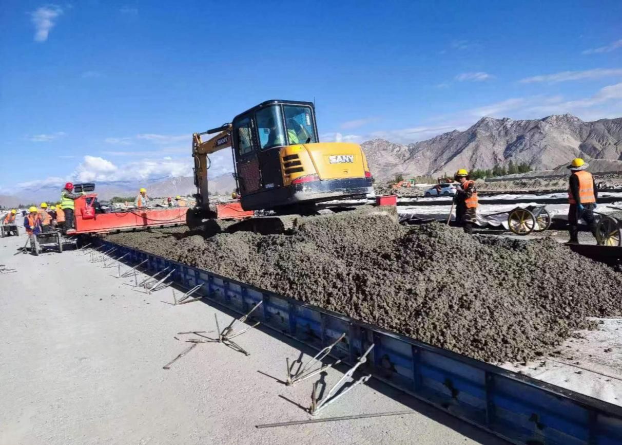 自開(kāi)工以來(lái),項(xiàng)目管理團(tuán)隊(duì)扎根在高原,拼搏在一線,牢牢抓住工程質(zhì)量和施工安全兩大核心,克服工程現(xiàn)場(chǎng)地下水位高、辮狀河道交錯(cuò)分布、地基軟弱土層多、巖層軟硬復(fù)雜、施工便道橫穿城鎮(zhèn)國(guó)道,以及低壓缺氧、惡劣的氣候條件,生產(chǎn)運(yùn)輸交叉、有效施工期短等困難,僅20個(gè)月,便完成跑道鋪設(shè),充分展現(xiàn)機(jī)械化建設(shè)者們埋頭苦干、銳意進(jìn)取的工作作風(fēng)。
