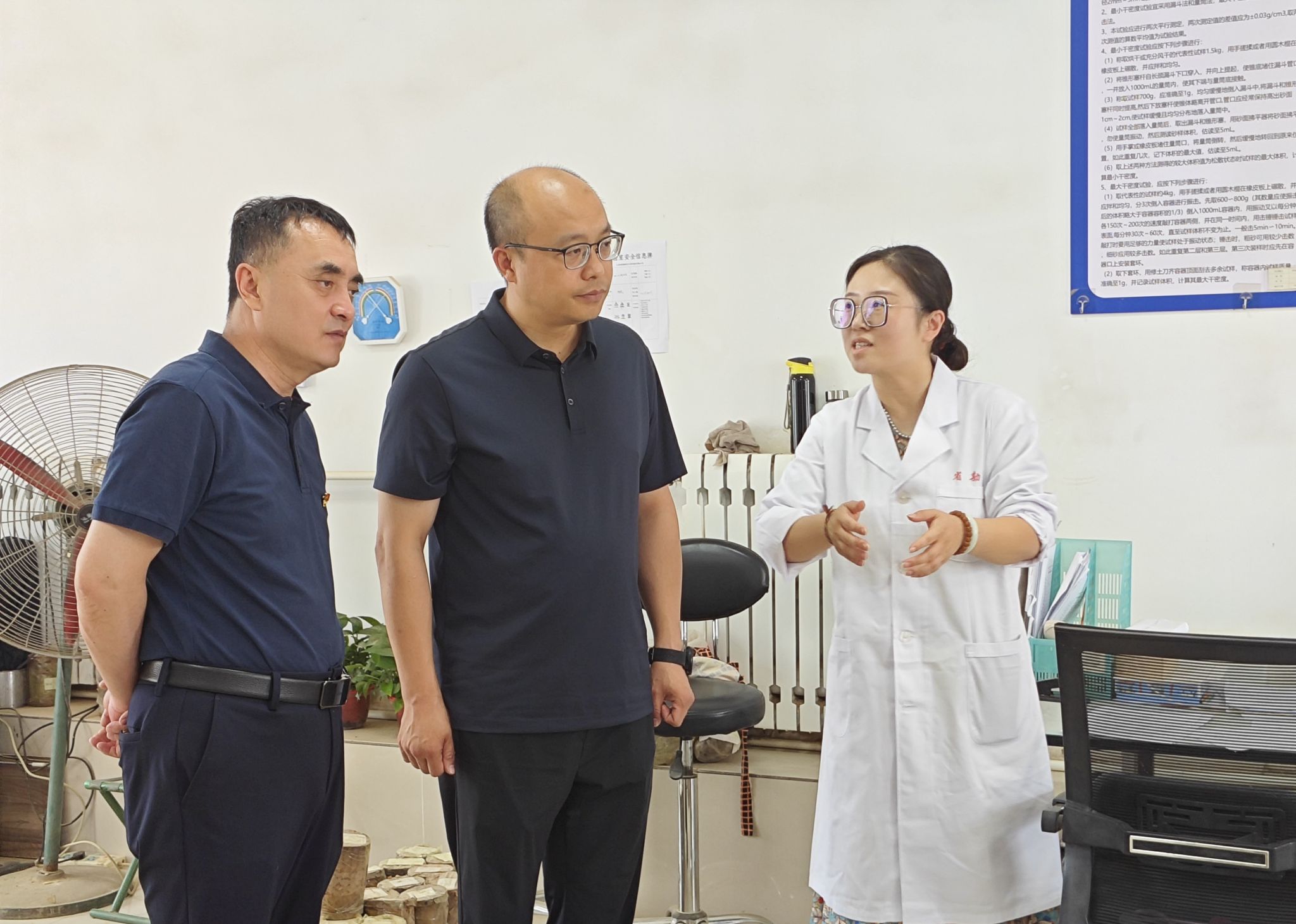 公司總經(jīng)理黨軍在座談會上對九三學(xué)社太原市市委、杏花嶺支社調(diào)研團(tuán)一行表示熱烈歡迎,詳細(xì)介紹了公司的歷史沿革、經(jīng)濟(jì)發(fā)展總體情況、科技創(chuàng)新工作及后續(xù)發(fā)展思路,并于會后邀請調(diào)研團(tuán)一行人參觀公司企業(yè)文化展覽室和土工試驗(yàn)中心。