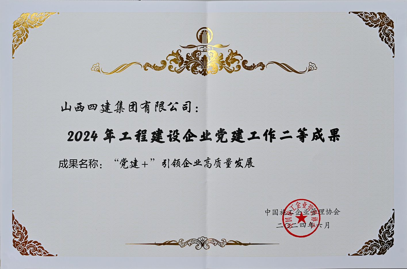 近日,中國施工企業(yè)管理協(xié)會主辦的“2024 年工程建設(shè)企業(yè)黨建工作成果交流會”在延安召開。會上,山西建投四建集團黨建成果《“黨建+”引領(lǐng)企業(yè)高質(zhì)量發(fā)展》榮獲工程建設(shè)企業(yè)黨建工作二等成果。