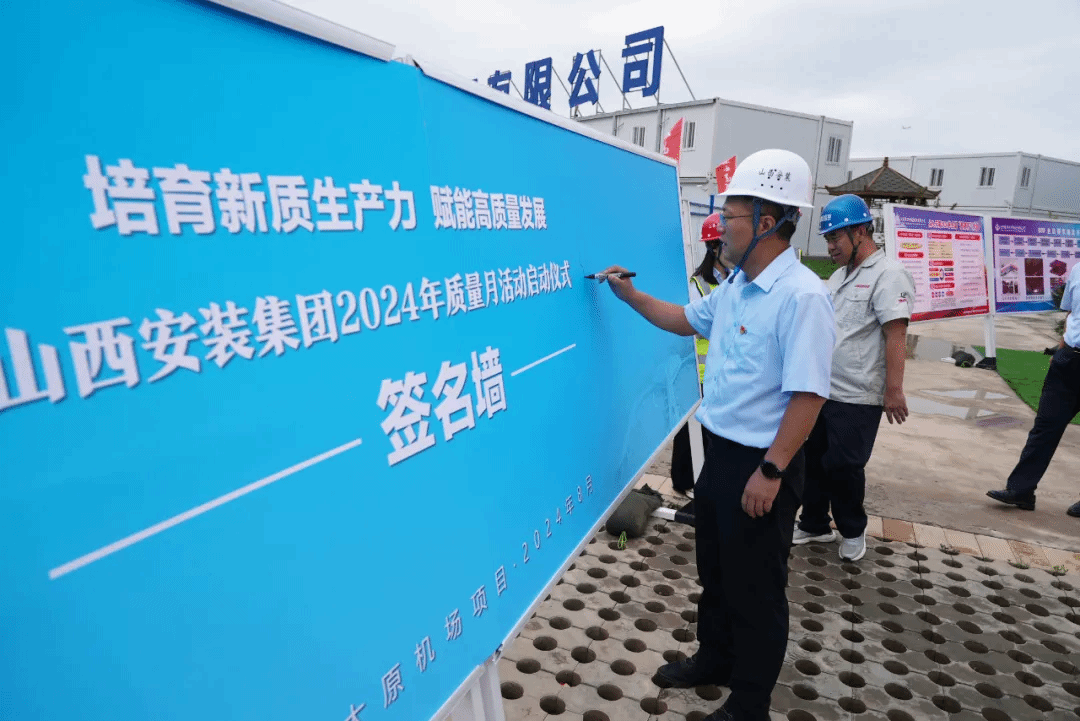 9月1日,山西建投安裝集團在太原武宿國際機場三期改擴建工程機電安裝項目部舉辦2024年“質(zhì)量月”活動啟動儀式。黨委副書記、副董事長、總經(jīng)理任銳出席并作動員講話。總工程師梁波,山西省建設(shè)監(jiān)理有限公司項目總監(jiān)代表王樹林,各基層單位相關(guān)負責(zé)人、項目部及勞務(wù)人員代表等110余人參加啟動儀式。