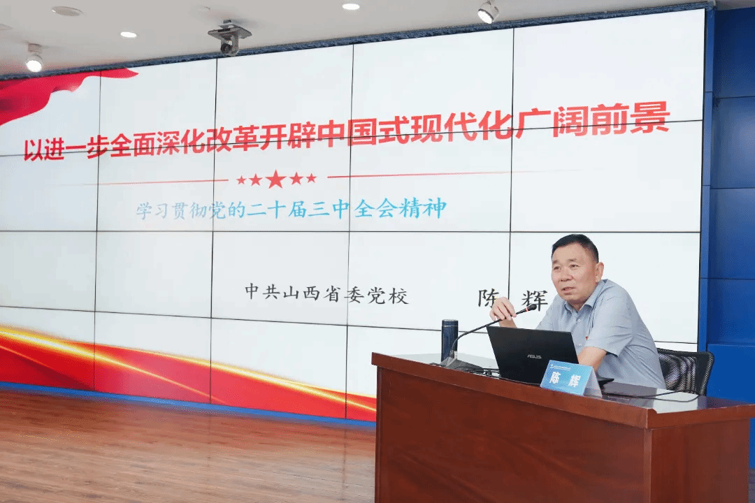 中共山西省委黨校陳輝教授“以進一步全面深化改革開辟中國式現(xiàn)代化廣闊前景”為題,緊緊圍繞習近平總書記在黨的二十屆三中全會上的重要講話和全會《決定》,闡明了推進中國式現(xiàn)代化的時代背景、歷史方位和使命任務,闡釋了進一步全面深化改革的指導思想、總目標和重大原則、重點領域。陳教授的講座語言生動、內容豐富,充分運用典型案例和翔實數(shù)據(jù),幫助學員不斷加深對全會精神的理解。