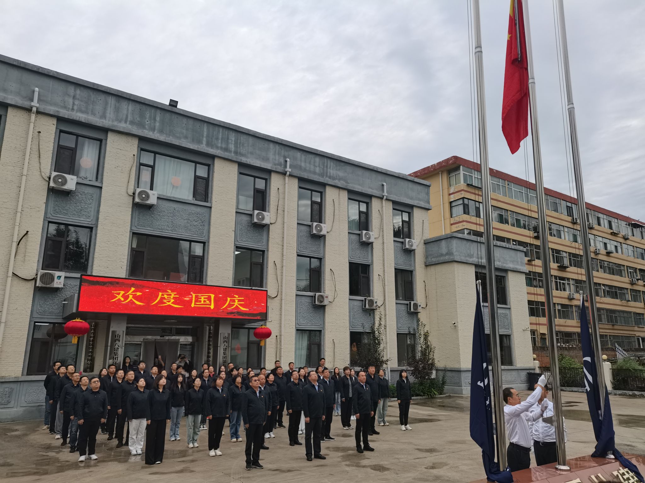 八建集團(tuán)各基層單位、項(xiàng)目在駐地同步進(jìn)行升旗儀式。