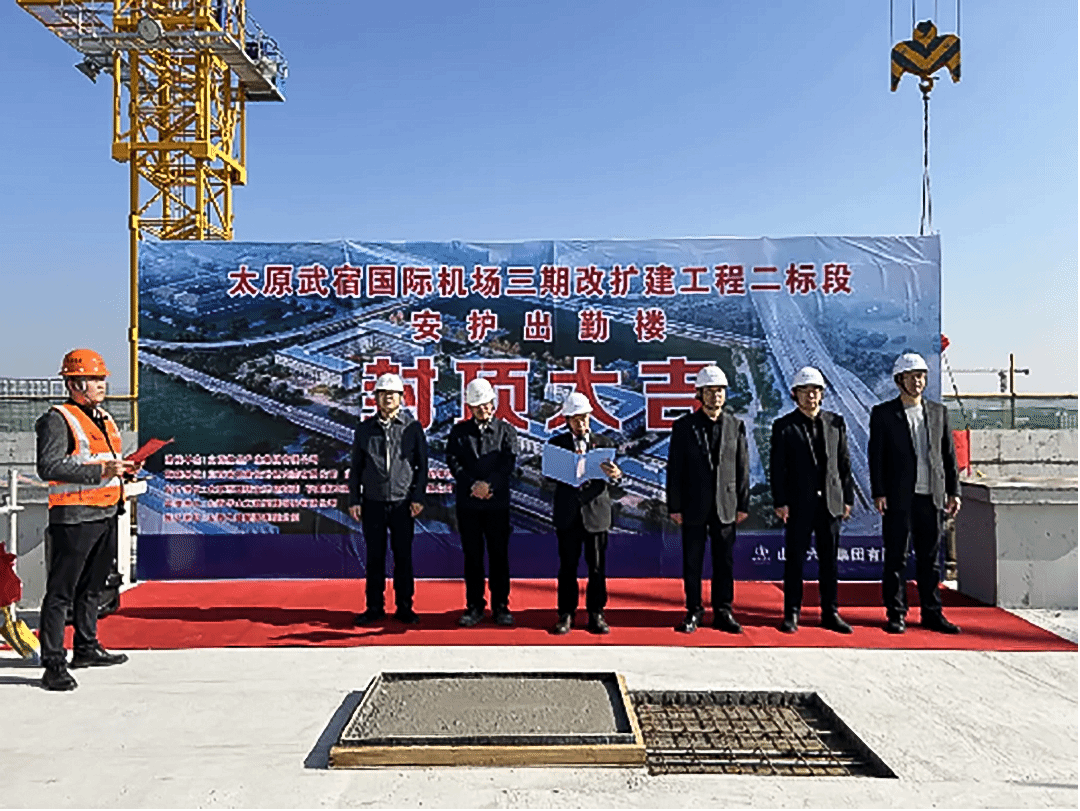 10月8日,山西建投六建集團(tuán)承建的太原武宿國(guó)際機(jī)場(chǎng)三期改擴(kuò)建工程專項(xiàng)業(yè)務(wù)用房、北區(qū)機(jī)務(wù)及特種車輛維修中心項(xiàng)目安護(hù)出勤樓主體結(jié)構(gòu)提前45天封頂。相關(guān)參建單位代表參加儀式。