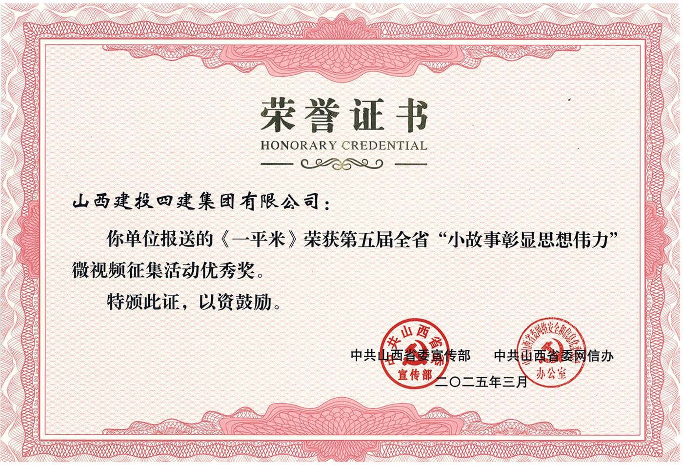 3月17日,在第五屆全省理論宣講大賽暨“小故事彰顯思想偉力”微視頻優(yōu)秀作品展演頒獎活動中,山西建投四建集團選送的短視頻作品《一平米》榮獲征集活動優(yōu)秀獎。
