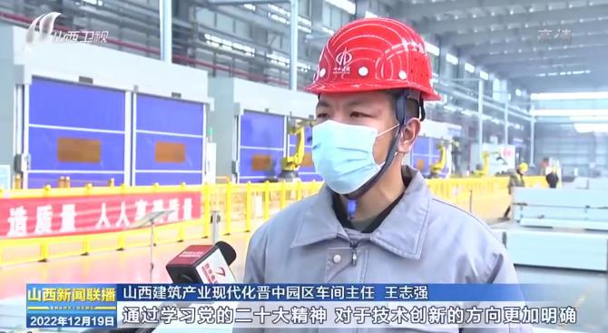 12月19日,山西衛(wèi)視《山西新聞聯(lián)播》就山西建筑產(chǎn)業(yè)現(xiàn)代化晉中園區(qū)深入學(xué)習(xí)宣傳貫徹黨的二十大精神進(jìn)車間、進(jìn)班組,以創(chuàng)新求突破,以實(shí)干促發(fā)展,奮力沖刺全年生產(chǎn)任務(wù)進(jìn)行報(bào)道。