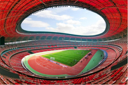 建筑面積90066m2,總高度55.64m,地上五層,下部結(jié)構(gòu)為混凝土框架剪力墻結(jié)構(gòu),上部為鋼結(jié)構(gòu)懸挑罩棚。場館內(nèi)可容納觀眾6萬座,2009年6月1日開工,2011年8月10日竣工驗收。