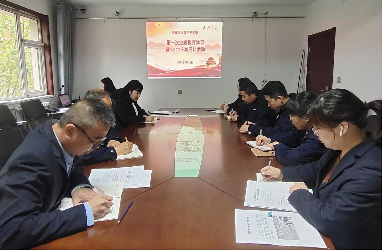 山西建投華廈咨詢公司黨總支學(xué)習(xí)貫徹習(xí)近平新時代中國特色社會主義思想主題教育工作部署會召開后,各黨支部迅速行動,認(rèn)真學(xué)習(xí)貫徹習(xí)近平總書記重要講話精神和黨中央部署要求,強(qiáng)化理論武裝,深學(xué)細(xì)照篤行,推動主題教育深入開展。