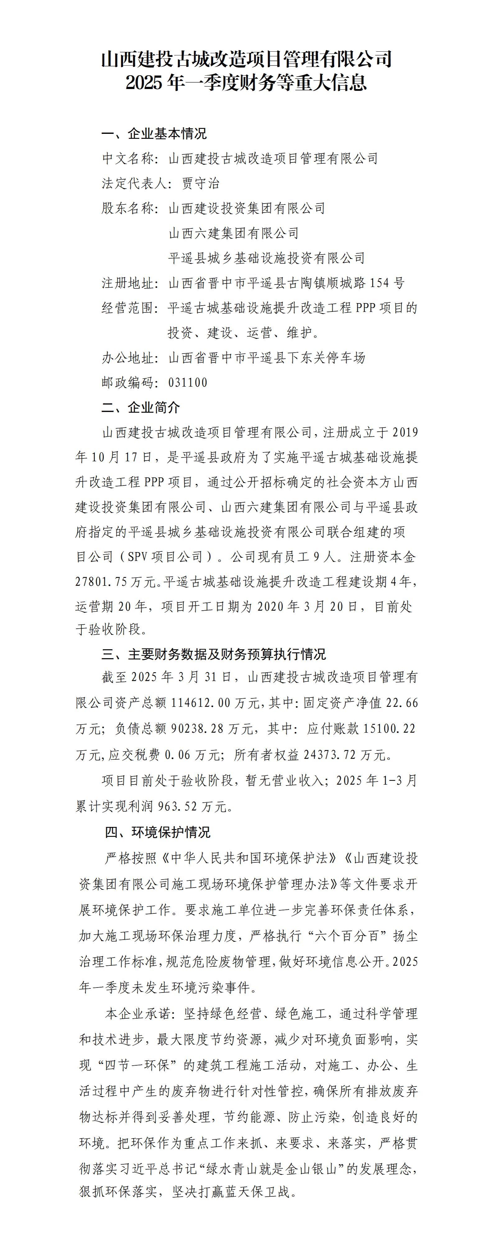 展望未來,山西建投將在省委省政府的正確領導下,進一步深化體制機制改革,持續(xù)創(chuàng)新商業(yè)模式,完善現(xiàn)代企業(yè)治理體系,深入推進內(nèi)涵集約式發(fā)展,促進經(jīng)營規(guī)模和經(jīng)濟效益持續(xù)穩(wěn)健增長。
